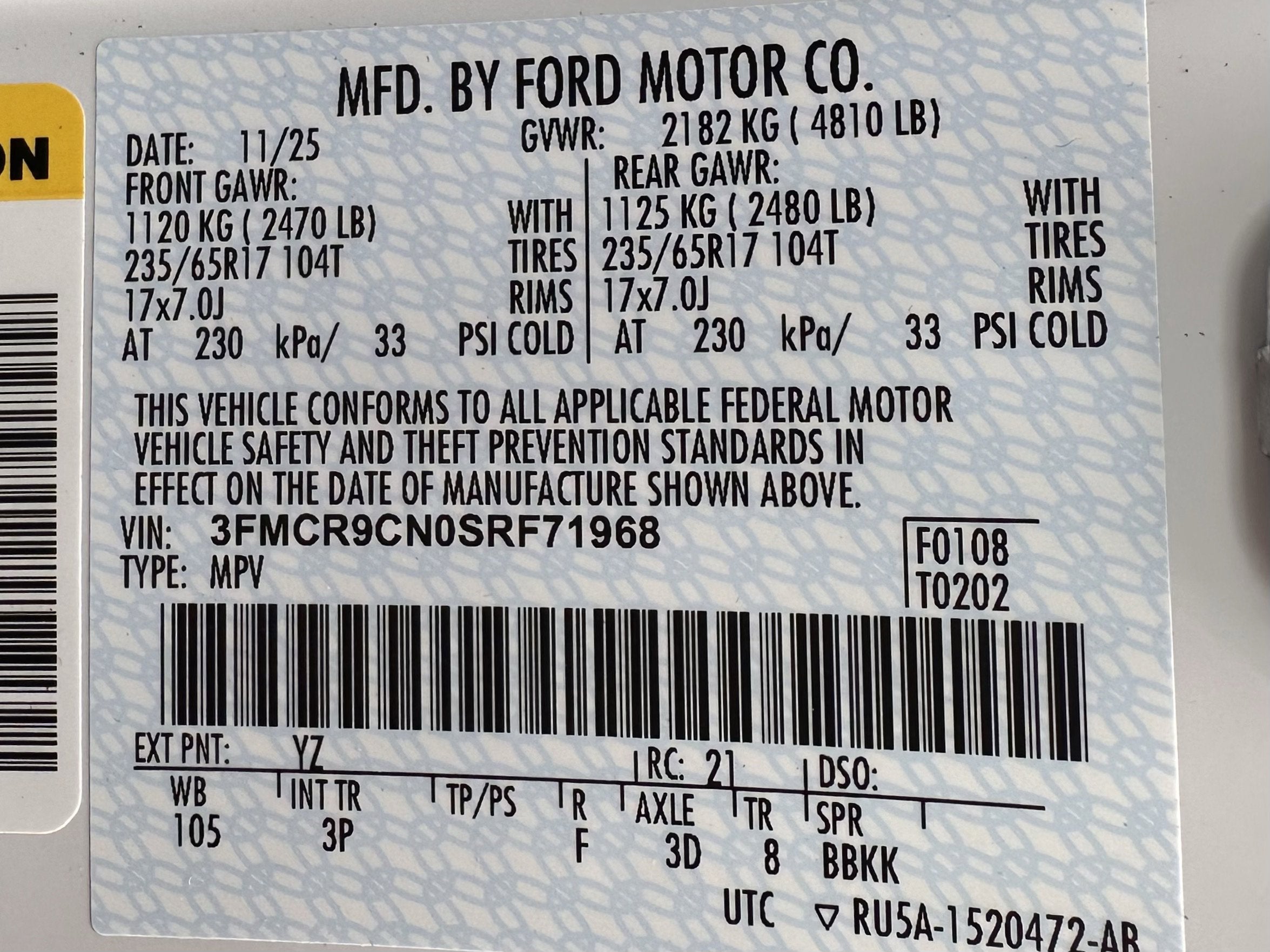 - Vehicle Name: Ford Bronco Sport