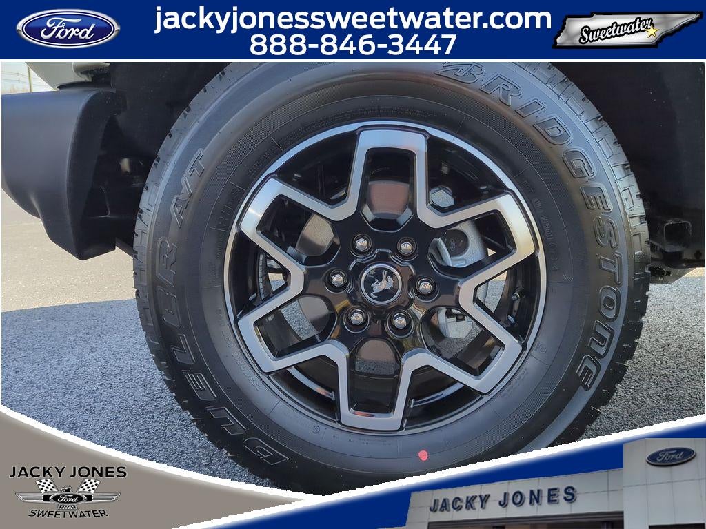 The state of the art park assist system will guide you easily into any spot. The Ford Bronco is pure luxury with a heated steering wheel. Start the vehicle from inside with remote start. This 2025 Ford Bronco offers Apple CarPlay for seamless connectivity. The leather seats in this vehicle are a must for buyers looking for comfort, durability, and style. An off-road package is equipped on this model. See what's behind you with the back up camera on this 1/2 ton suv. This 2025 Ford Bronco warns of approaching vehicles with Cross-Traffic Alert. The installed navigation system will keep you on the right path. The Ford Bronco has automated speed control that adjusts to maintain a safe following distance, enhancing highway driving convenience. The Ford Bronco features a hands-free Bluetooth® phone system. This 1/2 ton suv offers Android Auto for seamless smartphone integration. It has four wheel drive capabilities.