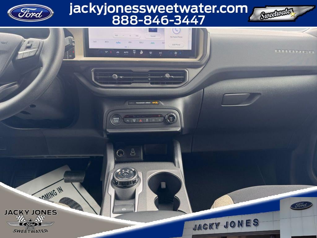 Ready to elevate your adventures in Sweetwater, TN — this 2026 Ford Bronco Sport Big Bend with 4WD and a fuel-efficient 3-cylinder, 1.5L gasoline engine is the perfect blend of capability and daily comfort. Priced to move, this Ford Bronco Sport delivers the best price in the area, giving you maximum value without compromising features or performance. Equipped with Remote Start for cold mornings and hot afternoons, Automatic Climate Control keeps the cabin comfortable on every drive. Stay connected and entertained with Hands Free Bluetooth® and Apple CarPlay, making navigation and streaming effortless while keeping your focus on the road. Tight parking situations are made simple with Rear Parking Sensors, offering confidence in crowded lots and busy streets. The Big Bend trim adds thoughtful finishes and off-road-ready versatility: rugged styling, durable interior materials, and a thoughtfully tuned suspension that balances on-road refinement with weekend trail capability. The 4WD system and compact, efficient 1.5L engine provide nimble handling and strong fuel economy for both urban commutes and scenic escapes. Located in Sweetwater, TN, this Ford Bronco Sport is ready for a test drive today. With its combination of modern tech, comfort features, and 4WD capability, it's an ideal choice for drivers who want a versatile compact SUV at the best price around. Contact us to schedule your appointment and experience this 2026 Ford Bronco Sport Big Bend for yourself.