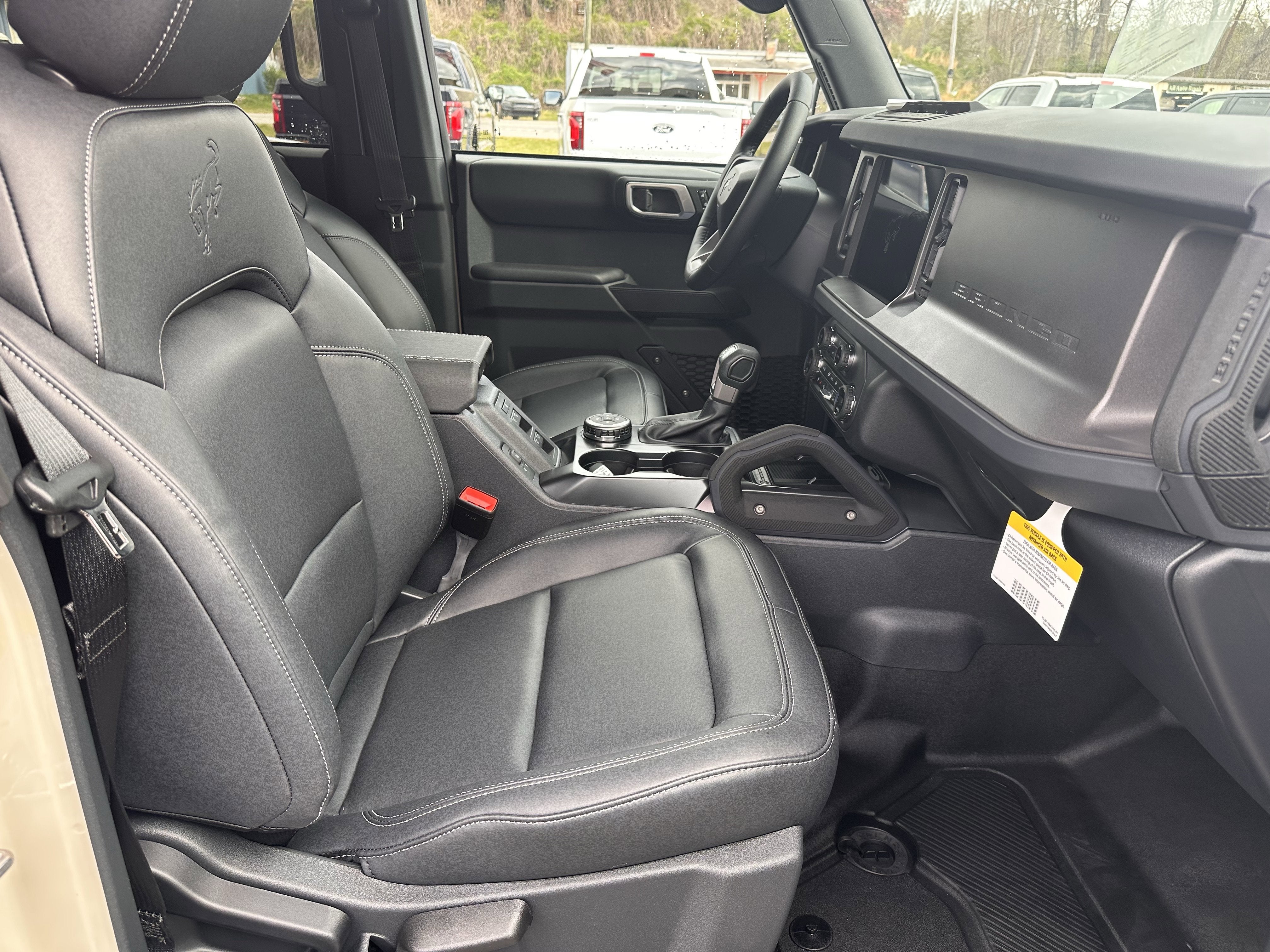 TRANSMISSION: 10-SPEED AUTOMATIC -inc: trail control, trail turn assist and trail one-pedal driving, SHADOW BLACK PAINTED HARD TOP -inc: Hard Top Sound Deadening Headliner, Rear-Window Defroster & Washer, SASQUATCH PACKAGE -inc: High Clearance Suspension, 4.7 Final Drive Ratio, electronic-locking front and rear axle, Front Stabilizer Disconnect, Tires: LT315/70R17 Rugged-Terrain, Position-Sensitive Bilstein Shock Absorbers, FRONT STABILIZER DISCONNECT, EQUIPMENT GROUP 334A LUX PACKAGE -inc: Rear Parking Sensors, Pro Power Onboard - 400W, Back side of center floor console, Dr & Pass Illuminated Sliding Visor Vanity Mirrors, Evasive Steering Assist, Heated Steering Wheel, Information on Demand Panel, Dual-Zone Electronic Automatic Temperature Control, air conditioning, Ford Co-Pilot360, Auto High-Beam Headlamps, Pre-Collision Assist w/Automatic Emergency Braking, pedestrian detection, forward collision warning and dynamic brake support, Blind Spot Information System (BLIS), Cross-Traffic Alert, Rear View Camera, backup assist grid lines, Lane-Keeping System, Lane-Keeping Alert, Lane-Keeping Aid and Driver Alert, Ambient Footwell Lighting, 2-Door Intelligent Access w/Lock/Unlock, Intelligent Access will also lock/unlock the swing gate, Dual Smart Charging USB Ports, Front Row Heated Seats, Adaptive Cruise Control, Radio: B&O Sound System by Bang & Olufsen, 12 speakers including subwoofer, Connected Navigation, Ford connectivity package, ENGINE: 2.7L ECOBOOST V6 -inc: GVWR: 6,180 lbs, 50-State Emissions, Standard equipment on 2.7L EcoBoost V6 engine (99P), Added to 2.3L EcoBoost I-4 engine (99H) orders from dealers located in the following California emissions states: California, Massachusetts, New York, Oregon, Pennsylvania, Vermont and Washington, Available option for dealers located in federal/non-California emissions border states for stock orders: Arizona, Connecticut, Delaware, Idaho, Maine, Maryland, Montana, New Hampshire, New Jersey, Nevada, Ohio, Rhode Island and West Virginia, Available option for dealers located in all states for retail orders, Available option for dealers located in all states for commercial/rental fleet orders, Available option for dealers located in all states for government fleet orders w/ship-to addresses in California emissions states, ENGINE BLOCK HEATER, Wireless Phone Connectivity, Wheels: 17 Carbonized Gray-Painted Aluminum, Vinyl/Rubber Floor Trim. This Ford Bronco has a dependable Twin Turbo Regular Unleaded V-6 2.7 L/164 engine powering this Automatic transmission.*These Packages Will Make Your Ford Bronco Badlands The Envy of Your Friends *Trip Computer, Transmission: 7-Speed Manual -inc: granny gear and crank in gear function and Hill Descent Control, Tracker System, Towing Equipment -inc: Trailer Sway Control, Tires: LT285/70R17 Rugged-Terrain R/T -inc: full size spare tire w/TPMS, Tire Specific Low Tire Pressure Warning, Tailgate/Rear Door Lock Included w/Power Door Locks, SYNC 4 -inc: 12 center display, wireless phone connection, cloud connected, 911 Assist, wireless Apple CarPlay and Android Auto compatibility, digital owner's manual and conversational voice command recognition, Swing-Out Rear Cargo Access, Streaming Audio, Solid Axle Rear Suspension w/Coil Springs, Smart Device Remote Engine Start, Smart Device Integration, SiriusXM w/360L -inc: super categories/live sports categories, for you recommendations and SiriusXM listener profiles, A 3-month trial subscription is included for all new SiriusXM-equipped Ford vehicles, Service will automatically stop at the end of your trial subscription period unless you decide to continue service, Trial is non-transferrable, If you do not wish to enjoy your trial, you can cancel by calling the number below, All SiriusXM services require a subscription, each sold separately by SiriusXM after the trial period, Service subject to the SiriusXM customer agreement and privacy policy, visit siriusxm.com for complete terms and how to cancel which includes online methods or calling 1-866-635-2349, Some services and features are subject to device capabilities and location availability, Satellite service not available in Alaska and Hawaii, Certain features and/or content may not be available in vehicles w/SiriusXM w/360L unless an active data connection is enabled in the vehicle, Content varies by SiriusXM subscription plan, All fees, content and features are subject to change, SiriusXM and related logos are trademarks of Sirius XM Radio Inc, and its respective subsidiaries, Single Stainless Steel Exhaust, Side Impact Beams, Short And Long Arm Front Suspension w/Coil Springs, Safety Canopy System Curtain 1st And 2nd Row Airbags, Removable Rear Window, Remote Reservoir Shock Absorbers.* Stop By Today *Come in for a quick visit at Jacky Jones Ford of Hayesville, 1493 Highway 64 West, Hayesville, NC 28904 to claim your Ford Bronco!