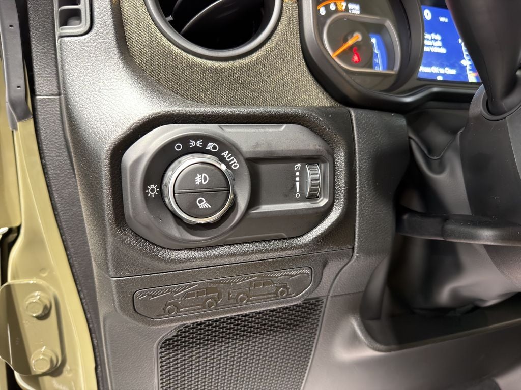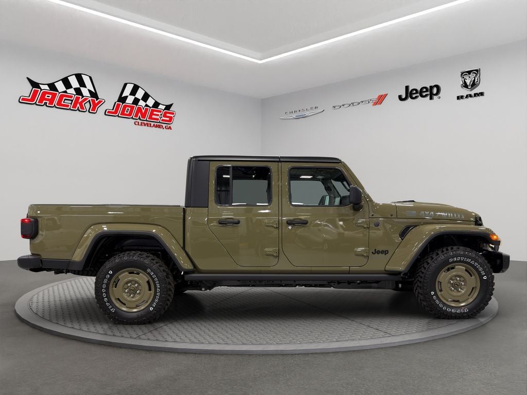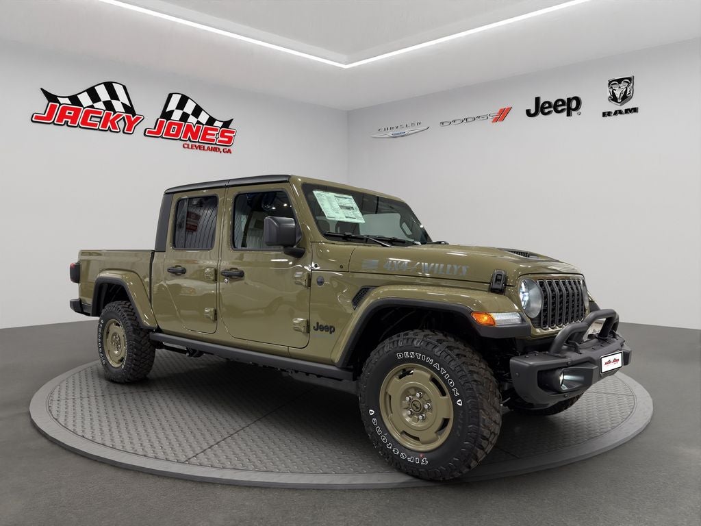 Convenience Group: Emergency/Assistance Call; Front Door Locks 2-Door Passive Entry; Remote Start System; Cluster 7.0" TFT Color Display; Universal Garage Door Opener; Daytime Running Lamp System; Heated Front Seats; Air Conditioning W/Auto Temp Control; Heated Steering Wheel; Corning Gorilla Glass. Quick Order Package 24T Willys 41: LED Taillamps; Protection Sill Rails; Willys '41 Retro Edition Gladiator Decal; MOPAR Black Hood Graphic; 4WD Willys '41 Tailgate Decal; MOPAR All-Weather Slush Mats; Willys '41; LT255/75R17C OWL On/Off Road Tires; Body Color Fender Flares (2-Piece); Front Heavy Duty Red Accent Shock Absorbers; Daytime Running Lamps LED Accents; Front LED Fog Lamps; LED Premium Reflector Headlamps; E-Locker Rear Axle; Green Soul Cloth Wrapped Mid-Bolster; Corning Gorilla Glass; Trailer Hitch Zoom; Class IV Receiver Hitch; Security Alarm; Performance Hood; Steel Front Bumper; 17" X 7.5" Fully Painted Wheels; Advanced Brake Assist; Willys Suspension; Heavy Duty Engine Cooling; Automatic Headlamps; Air Conditioning W/Auto Temp Control; 5. 950 lbs GVWR; Deep Tint Sunscreen Windows; MOPAR Triple Hoop Grille Guard; Off-Road Plus Mode; Central ADAS Decision Module (CADM); Willys '41 US Edition U.S. Hood Decal; Full Speed Forward Collision Warning Plus; Rear Heavy Duty Red Accent Shock Absorbers; Front Door Locks 2-Door Passive Entry; 97 MPH Vehicle Max Speed Calibration; Cloth Low-Back Bucket Seats; Cluster 7.0" TFT Color Display; Power Heated Mirrors; Daytime Running Lamp System; Auxiliary Switches; Premium Wrapped Steering Wheel; Sun Visors W/Illuminated Vanity Mirrors. Black 3-Piece Hard Top. 41. **Equipment listed is based on original vehicle build and subject to change. Please confirm the accuracy of the included equipment by calling the dealer prior to purchase.**