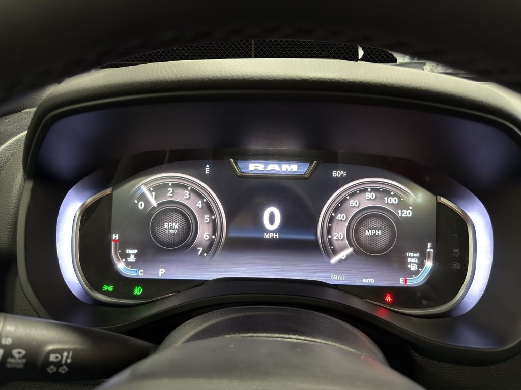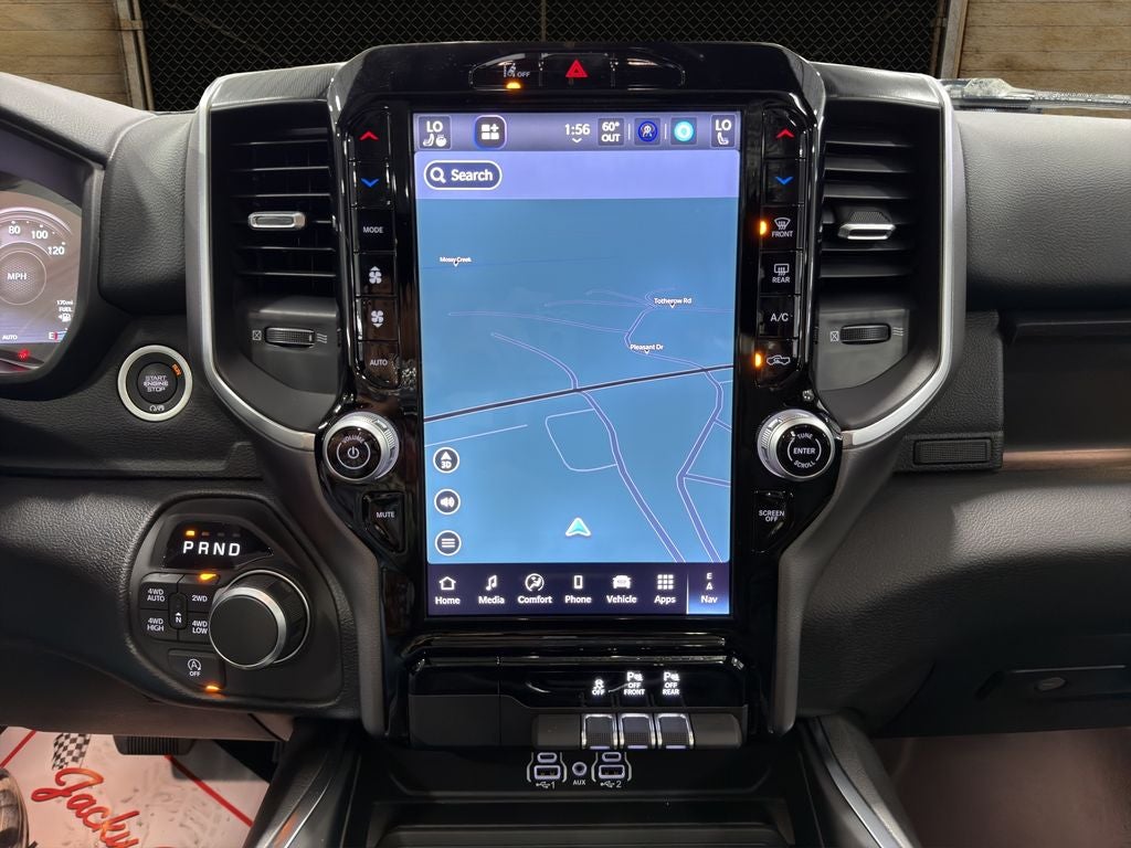 Quick Order Package 27Z Big Horn. Big Horn Level 2 Equipment Group: Google Android Auto; SiriusXM Radio Service; USB Host Flip; Power Adjustable Pedals; Leather Wrapped Steering Wheel; Integrated Voice Command with Bluetooth®; 12" Touchscreen Display; Glove Box Lamp; Auto Power-Folding Mirrors; 115V Auxiliary Rear Power Outlet; Media Hub with 2 Charge Only USBs; Heated Front Seats; Security Alarm; Black Premium Power Mirrors; Apple CarPlay; Premium Overhead Console; 9 Amplified Speakers with Subwoofer; Disassociated Touchscreen Display; Body Color Fender Flares; Remote Tailgate Release; 115V Auxiliary Power Outlet; LED Dome Lamp with On/off Switch; Universal Garage Door Opener; 2nd Row in Floor Storage Bins; Sun Visors with Illuminated Vanity Mirrors; LED Footwell Lighting; Rear Window Defroster; Integrated Center Stack Radio; Rear View Auto Dim Mirror; Rear Power Sliding Window; Connectivity - US/Canada; GPS Navigation; 4G LTE Wi-Fi Hot Spot; GPS Antenna Input; Overhead LED Lamps; Exterior Mirrors with Heating Element; Auto Dim Exterior Driver Mirror; SiriusXM with 360L; Global Telematics Box Module; Connected Travel and Traffic Services; Heated Steering Wheel; Configurable Drive Mode; 400W Inverter; HD Radio; Deluxe Cloth Bucket Seats; Uconnect 5 Navigation with 12.0" Display Radio; Exterior Mirrors with Supplemental Signals; Steering Wheel Mounted Audio Controls; Exterior Mirrors Courtesy Lamps; Air Conditioning ATC with Dual Zone Control; Cluster 7.0" TFT Color Display; Convex Wide-Angle Exterior Mirror Insert. Night Edition: 275/55R20 OWL All Season Tires; Accent Color Premium Power Mirrors; Exterior Mirrors with Supplemental Signals; Black Headlamp Bezels; Exterior Mirrors Courtesy Lamps; Grille Black Surround Black Mesh; Auto Power-Folding Mirrors; Exterior Mirrors with Heating Element; 20" X 9.0" Aluminum Painted Clad Wheels; Auto Dim Exterior Driver Mirror; Black Exterior Truck Badging; Anti-Spin Differential Rear Axle; Accent Color Door Handles; Accent Color Tailgate Handle; Black Interior Accents; Dual Exhaust with Black Tips; Body Color Front Bumper; Convex Wide-Angle Exterior Mirror Insert; Body Color Rear Bumper with Step Pads; Black Tail Lamp Bezels; RAM Grille Badge - Black; Black Painted Exterior Mirrors Caps. Bed Utility Group: MOPAR Spray in Bedliner; MOPAR Deployable Bed Step; MOPAR 4 Adjustable Cargo Tie-Down Hooks; Pick-Up Box Lighting; Exterior 115V AC Outlet. Quick Order Package 23Z Big Horn. Dual-Pane Panoramic Sunroof. 9 Amplified Speakers with Subwoofer. Anti-Spin Differential Rear Axle. 33 Gallon Fuel Tank. Hydro Blue Pearlcoat. Rear Underseat Compartment Storage. Cluster 12" TFT Color Display. 3.92 Rear Axle Ratio. **Equipment listed is based on original vehicle build and subject to change. Please confirm the accuracy of the included equipment by calling the dealer prior to purchase.**