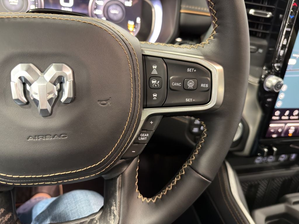 Bluetooth® technology is built into this 2026 Ram 1500 , keeping your hands on the steering wheel and your focus on the road. Keep your hands warm all winter with a heated steering wheel in the vehicle . See what's behind you with the back up camera on this vehicle. The vehicle has automated speed control that adjusts to maintain a safe following distance, enhancing highway driving convenience. Apple CarPlay: Seamless smartphone integration for this 2026 Ram 1500 - stay connected and entertained on the go! It comes equipped with Android Auto for seamless smartphone integration on the road. Start this 1/2 ton pickup from inside with remote start. The leather seats in this 2026 Ram 1500 are a must for buyers looking for comfort, durability, and style. You'll never again be lost in a crowded city or a country region with the navigation system on the vehicle. This Ram 1500 has a 6 Cyl, 3.0L high output engine.