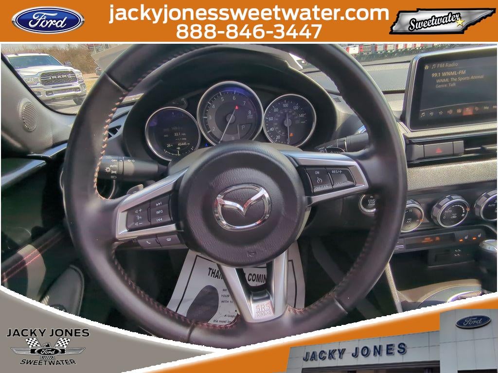 2017 Mazda MX-5 Miata RF Grand Touring — 45,421 miles — Sweetwater, TN. This striking retractable fastback delivers pure driving joy with rear-wheel drive and a responsive 2.0L 4-cylinder engine that balances spirited performance and fuel efficiency. The RF Grand Touring blends a sporty soul with refined comforts and the best price in the area for a low-mileage MX-5 that checks every box. Inside, premium leather seats cradle you through winding backroads or daily commutes, while the well-appointed cabin boasts intuitive controls and a driver-focused layout. Safety and convenience features include Lane Departure Warning and Blind Spot Monitor for added confidence on highways and busy streets. Seamless connectivity comes through Hands Free Bluetooth® and an integrated Navigation system that makes trips effortless. This Miata RF Grand Touring offers crisp handling, nimble steering, and a near-perfect balance that thrills enthusiasts and city drivers alike. Its compact footprint hides a surprisingly refined ride, and the retractable hardtop provides coupe-like security with convertible freedom when you want the wind in your hair. Located in Sweetwater, TN, this 2017 Mazda MX-5 Miata RF Grand Touring with 45,421 miles presents an exceptional value and the best price you'll find for this combination of features and condition. Schedule a test drive today to experience the engaging drive and refined amenities that make this Miata a standout choice.