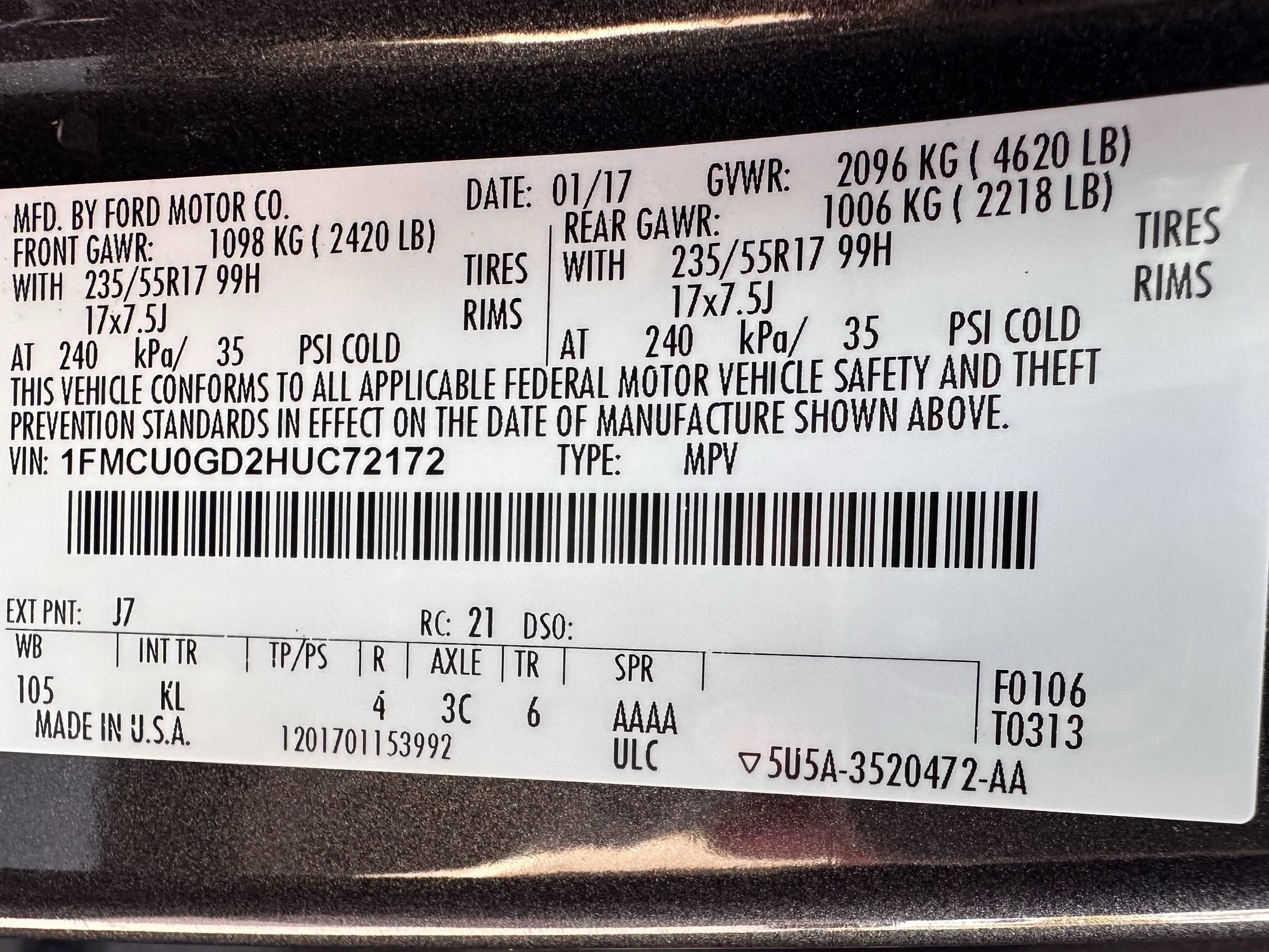- Vehicle Name: Ford Escape