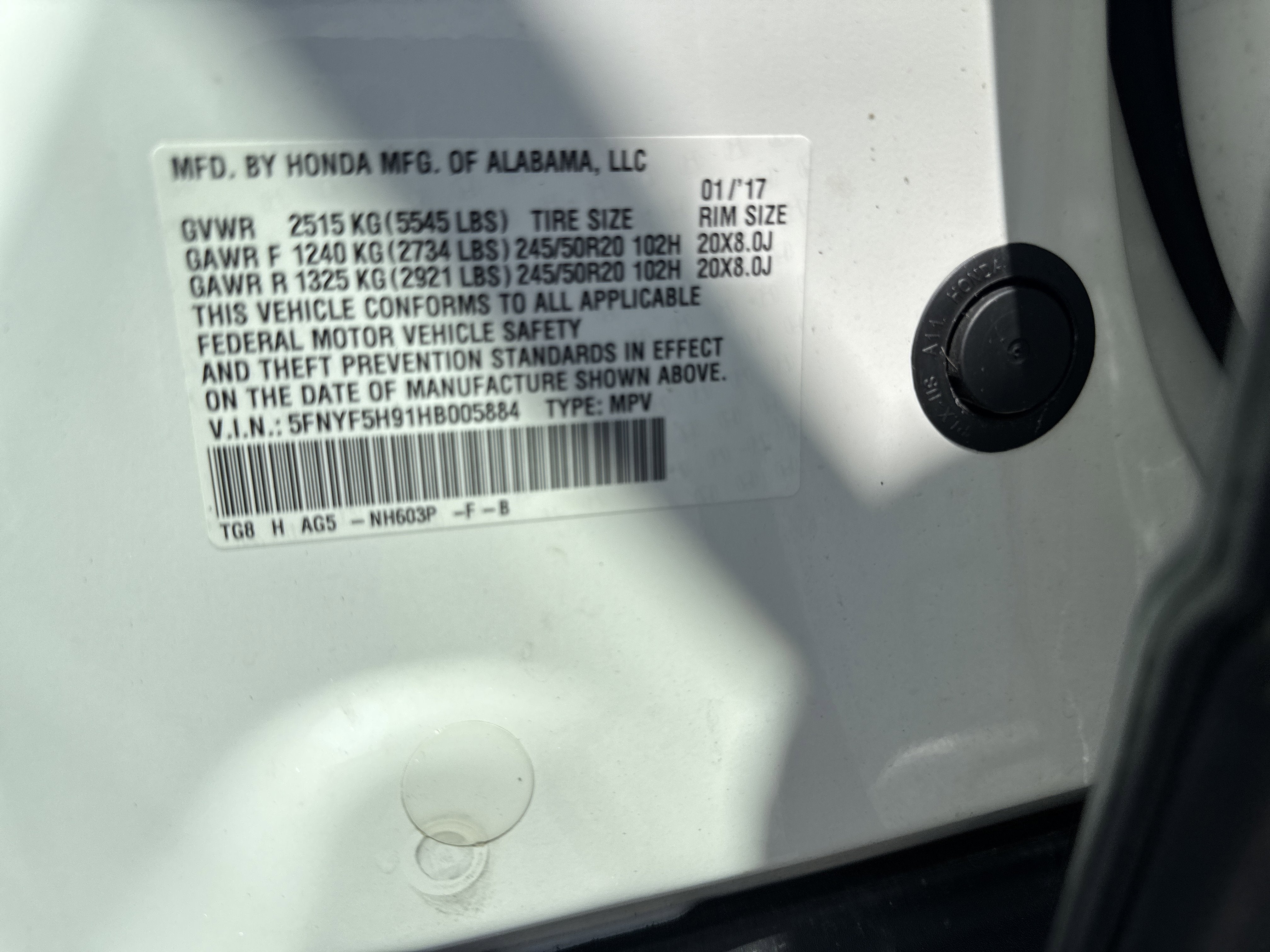5FNYF5H91HB005884