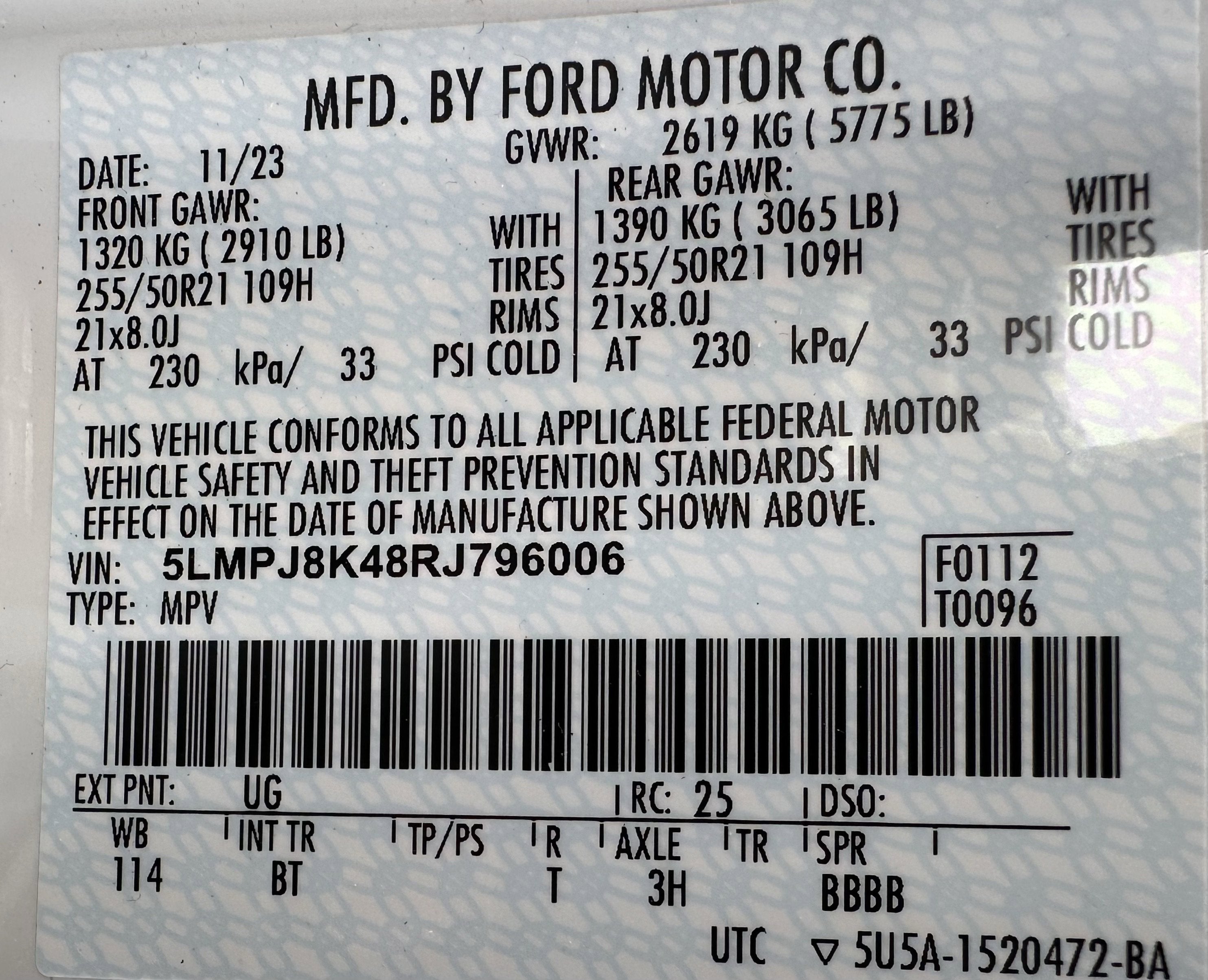 VIN: 5LMPJ8K48RJ796006
