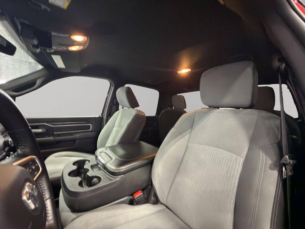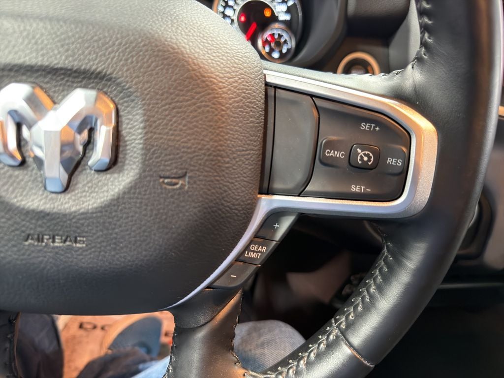Quick Order Package 2GZ Big Horn. Bed Utility Group: MOPAR Spray in Bedliner; MOPAR Deployable Bed Step; LED Bed Lighting. Level 1 Equipment Group: Google Android Auto; SiriusXM Radio Service; Bluetooth® Handsfree Phone and Audio; Integrated Center Stack Radio; For Details. Visit DriveUconnect.com; For More Info. Call 800-643-2112; Leather Wrapped Steering Wheel; Rear Dome with On/off Switch Lamp; Front Fog Lamps; Integrated Voice Command with Bluetooth®; Connectivity - US/Canada; Premium Cloth 40/20/40 Bench Seat; Glove Box Lamp; Auto Power-Folding Mirrors; Footwell Courtesy Lamp; 4G LTE Wi-Fi Hot Spot; GPS Antenna Input; Exterior Mirrors with Heating Element; Global Telematics Box Module; Mirror Running Lights; Uconnect 5 W Radio with 8.4" Display; 8.4" Touchscreen Display; Foam Bottle Insert (door Trim Panel); Black Exterior Mirrors; 18" X 8.0" Polished Aluminum Wheels; Apple CarPlay; Big Horn Instrument Panel Badge; Power Adjustable Convex Aux Mirrors; Forward and Reverse Utility Lights; Locking Lower Glove Box; Selectable Tire Fill Alert; SiriusXM Satellite Radio; Power Heated Fold Telescope Mirrors; Exterior Mirrors with Supplemental Signals; Steering Wheel Mounted Audio Controls; Exterior Mirrors Courtesy Lamps; Dual Glove Boxes; Center Hub; Power Adjust Mirrors; 2nd Row in Floor Storage Bins; Power Telescoping Mirrors. Protection Group: Tow Hooks; Transfer Case Skid Plate Shield. Premium Cloth 40/20/40 Bench Seat. Chrome Flat Cab-Length Side Steps. MOPAR Spray in Bedliner. 9 Alpine Speakers with Subwoofer. Anti-Spin Differential Rear Axle. Front Fog Lamps. Tow Hooks. **Equipment listed is based on original vehicle build and subject to change. Please confirm the accuracy of the included equipment by calling the dealer prior to purchase.**