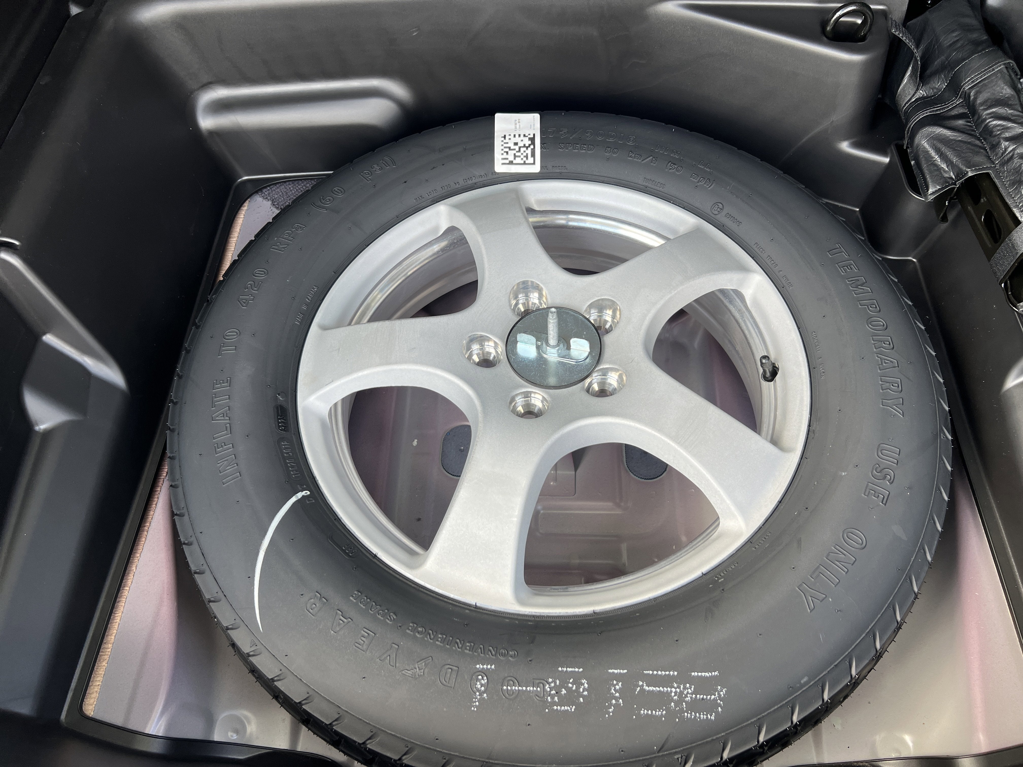 - Compact Spare Tire Mounted Inside Under Cargo