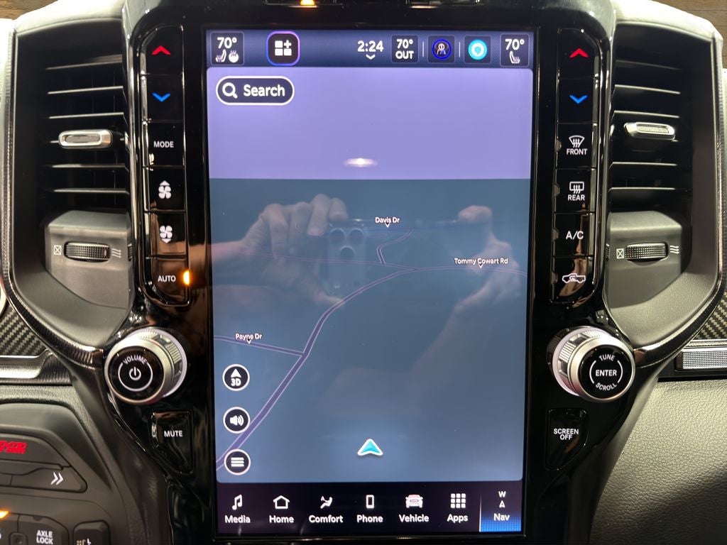The vehicle's Lane Departure Warning helps keep you in your lane. The Ram 1500 features a hands-free Bluetooth® phone system. This vehicle is a certified CARFAX 1-owner. The leather seats in this vehicle are a must for buyers looking for comfort, durability, and style. This unit offers Android Auto for seamless smartphone integration. You'll never again be lost in a crowded city or a country region with the navigation system on this Ram 1500. This 1/2 ton pickup's Forward Collision Warning system alerts the driver to potential front-end collisions, enhancing safety. Start the Ram 1500 from inside with remote start. Apple CarPlay: Seamless smartphone integration for this 2025 Ram 1500 - stay connected and entertained on the go! The vehicle is pure luxury with a heated steering wheel. An off-road package is installed on it so you are ready for your four-wheeling best. See what's behind you with the back up camera on this 2025 Ram 1500 .