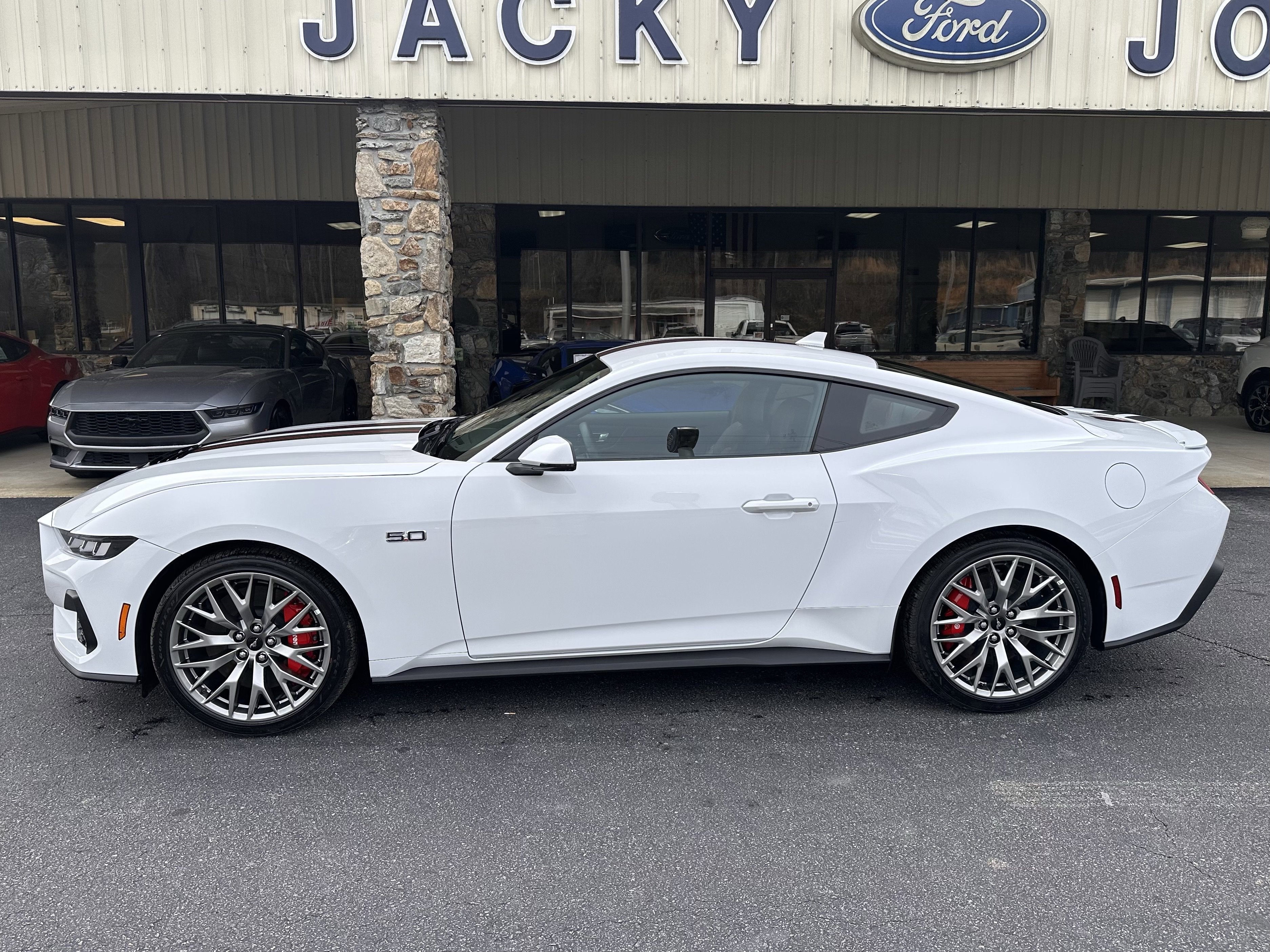 This Ford Mustang has a powerful Premium Unleaded V-8 5.0 L/302 engine powering this Manual transmission. ENGINE: 5.0L TI-VCT V8 -inc: stop/start system and Port Fueled Direct Injection (PFDI) (STD), Wheels: 19 x 8.5 Shadow Silver-Painted Aluminum, Voice Activated Dual Zone Front Automatic Air Conditioning, Trunk Rear Cargo Access, Trip Computer.*This Ford Mustang Comes Equipped with These Options *Transmission: 6-Speed Manual -inc: dual mass flywheel, twin disc clutch and rev matching, Tires: 19, Tire Specific Low Tire Pressure Warning, Tire Mobility Kit, Tinted Glass, SYNC 4 -inc: enhanced voice recognition, information on demand panel, 13.2 LCD capacitive touchscreen w/swipe capability, SYNC 4 AppLink, 911 Assist, wireless Apple CarPlay and Android Auto compatibility, digital owner's manual, conversational voice recognition and 2 smart charging USB ports, Strut Front Suspension w/Coil Springs, Streaming Audio, Sport Heated Leather Steering Wheel, Speed Sensitive Rain Detecting Variable Intermittent Wipers, Side Impact Beams, Securilock Anti-Theft Ignition (pats) Immobilizer, Seats w/Leatherette Back Material, Remote Releases -Inc: Power Cargo Access, Remote Keyless Entry w/Integrated Key Transmitter, Illuminated Entry, Illuminated Ignition Switch and Panic Button.*Visit Us Today *Test drive this must-see, must-drive, must-own beauty today at Jacky Jones Ford of Hayesville, 1493 Highway 64 West, Hayesville, NC 28904.